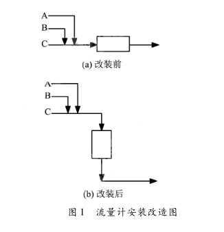 流量計輸出波動是出現(xiàn)比率*多的故障類型,這種情況大多是由于儀表安裝不當或工藝流體影響造成的。流量計安裝改造圖如圖1所示。