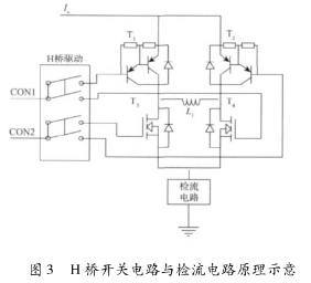 H橋開關(guān)電路主要由H橋路及其驅(qū)動(dòng)電路組成,用于實(shí)現(xiàn)對(duì)勵(lì)磁線圈進(jìn)行方波勵(lì)磁。原理示意圖如圖3所示。