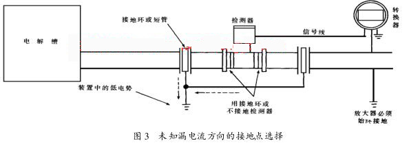如果接地采用檢測器旁路方式(見圖 1), 電解槽的漏電流將通過 A—C 和 B—C 。如果不同的電流流過A 和 B 電* ,那么 A 和 B 電*之間的平衡就會不同 ,其結果將會飽和放大器 。如果接地采用接地環(huán)方式 ,且避開檢測器直接接地 ,漏電流對電*A 和 B 的影響將減至*小, 且有一個穩(wěn)定的 C電勢 ,其結果將會在液體中減少輸出波動, 且建立一個參考電勢 。