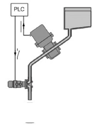在灌裝系統(tǒng)中用到快速切斷閥(定量閥)來(lái)控制灌裝的啟停。快速切斷閥的控制原理:當(dāng)電磁閥接收到PLC的輸出信號(hào)(由PLC采集灌裝流量計(jì)的脈沖信號(hào)后處理的輸出信號(hào))時(shí)開(kāi)始動(dòng)作,通過(guò)執(zhí)行機(jī)構(gòu)帶動(dòng)閥桿和閥芯向上運(yùn)動(dòng),閥芯和閥座分開(kāi),流體通過(guò)閥座進(jìn)入灌裝管道,開(kāi)始灌裝,當(dāng)電磁閥接收到PLC輸出信號(hào)關(guān)閉閥門(mén)時(shí),閥桿向下運(yùn)動(dòng),帶動(dòng)閥芯向下運(yùn)動(dòng),使閥芯和閥座接觸,從而切斷流體達(dá)到結(jié)束灌裝。本應(yīng)用中控制閥的閥桿在管道中,流體從上向下流經(jīng)整個(gè)閥體,閥桿的動(dòng)作行程分兩級(jí),對(duì)應(yīng)于小流量和較大流量。