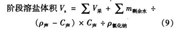 式中:V,為日溶鹽體積,m3; VA為日采鹽體積,m3 ;場余為腔體擴大后未排出液體的溶鹽體積,m3 ; Vip1*a為腔體擴大后未排出液體體積,m3m剩赫為腔體擴大后未排出的液體中等效淡水溶劑質量,kg;V排-為日排出液體體積,m3m瑰為日注人液體體積,m3; C排為日排出液體氯化鈉質量體積濃度,歲1; C排-為日注人液體氯化鈉質量體積濃度,g/l;C注為日排出液體密度,kg/m3 ; p注為日注人液體密度,kg/m3,P氯化鈉為氯化鈉密度,kg/m3 ; p水為水的密度,kg/m3 ; V8為階段溶鹽體積,m3 ; C聲為聲吶測量時腔體內(nèi)氯化鈉質量體積濃度,g/1; P聲為聲吶測量時腔體內(nèi)液體密度,kg/m3kg/M。