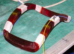 由此可見,給水流量計(jì)正常運(yùn)行需要有穩(wěn)定的磁場,而磁場正是靠傳感器線圈內(nèi)的 勵(lì)磁電流來產(chǎn)生的。勵(lì)磁線圈如圖2所示。