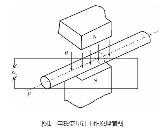 砂漿流量表是利用法拉*電磁感應(yīng)定律設(shè)計(jì)的流量測(cè)量?jī)x表,用于測(cè)量導(dǎo)電液體的體積流量。根據(jù)法拉*電磁感應(yīng)定律,當(dāng)導(dǎo)體切割磁力線運(yùn)動(dòng)時(shí),導(dǎo)體內(nèi)將產(chǎn)生感應(yīng)電動(dòng)勢(shì)Ex(圖1),方向根據(jù)右手定則確定,感應(yīng)電動(dòng)勢(shì)Ex的大小與磁場(chǎng)的磁感應(yīng)強(qiáng)度B、傳感器管道的內(nèi)徑D和流過(guò)導(dǎo)電液體的流速V成正比,B、D、V三者相互垂直,即Ex=BDV。