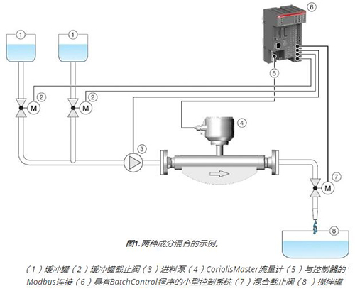 泵上的閥門和油箱出口由控制器操作。通過管道式電磁流量計后面的混合閥可實現(xiàn)混合操作以及配方精度。