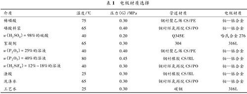 國內(nèi)某 300 kt/a 磷酸裝置中,含有不同溫度、不同壓力、不同濃度的多種酸液,包括:稀磷酸、濃硫酸、磷酸料漿、絮凝劑、P 2 O 5 溶液、H 2 SiF 6 溶液、渣酸、洗滌水、酸性循環(huán)水、工藝水等。如此復(fù)雜的工藝介質(zhì)對流量計(jì)的選型要求很高,酸液的配比、濃度、溫度、雜質(zhì)、溶解氣體以及流速等都會影響接液材質(zhì)的耐腐蝕性。