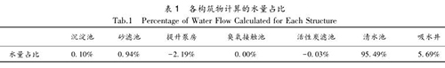 據(jù)統(tǒng)計(jì),各構(gòu)筑物的水量占比如表 1 所示。