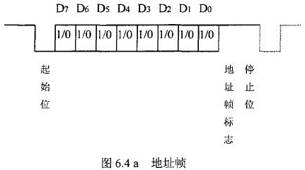 紙漿流量計等節(jié)點設(shè)備和站內(nèi)PC機(jī)間的通信采用異步串行通訊控制規(guī)程,并采用地址位喚醒握手協(xié)議。因此在協(xié)議中規(guī)定了傳地址和傳數(shù)據(jù)兩種不同的幀格式,如圖.64所示。地址幀和數(shù)據(jù)幀由11位構(gòu)成,幀格式為l位起始位,l位停止位,8位數(shù)據(jù)位,1位*9位。我們將*9位設(shè)定為“地址/數(shù)據(jù)指示位”,用來區(qū)分所發(fā)送/接受的幀信息是地址幀還是數(shù)據(jù)幀。*9位為1,表示PC機(jī)發(fā)送/接受的是“地址幀”*9位為O,表示主機(jī)發(fā)送/接受的是“數(shù)據(jù)幀”。命令幀與校驗和的發(fā)送格式與數(shù)據(jù)幀相同,因此可由數(shù)據(jù)幀演化得到。