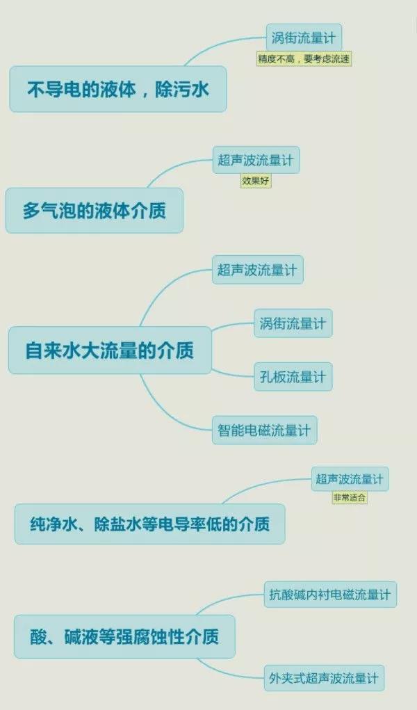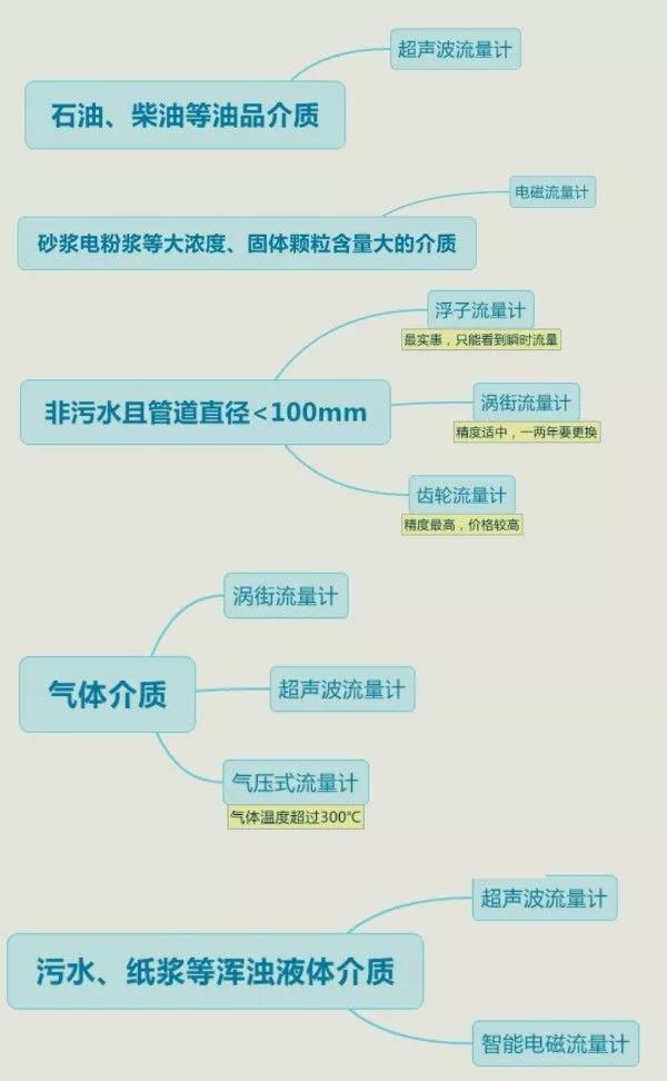 為了保證流量儀表在生產(chǎn)現(xiàn)場過程中發(fā)揮*好、*精確的使用,工業(yè)水流量計的選擇,一般情況下,必須要根據(jù)生產(chǎn)現(xiàn)場需要計量的介質(zhì)而定。這是凱銘儀表根據(jù)所測物的介質(zhì)不同所做的圖,望收藏。