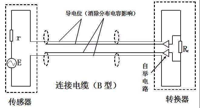 當(dāng)Ri>>r,C0(連接電纜二線間分布電容)很小時(shí),Ei≈E;當(dāng)介質(zhì)電導(dǎo)率很低,轉(zhuǎn)換器輸入電壓衰減Ei,而C0分布電容并聯(lián)效應(yīng)顯著,且波形發(fā)生畸變。當(dāng)被檢測介質(zhì)電導(dǎo)率低,傳感器與轉(zhuǎn)換器間距長時(shí),使用多重屏蔽電纜的概率越高。