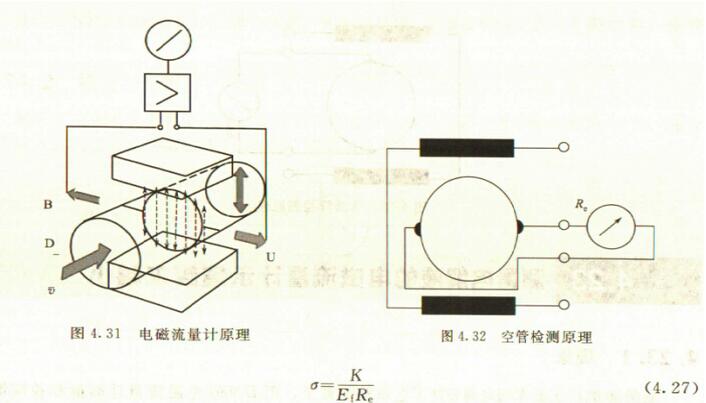 非滿管檢測也是基于電導(dǎo)率檢側(cè)的方法。在圖4.33所示的電磁流量傳感器中,增加了一個(或一對)非滿管檢測電*。當(dāng)導(dǎo)管內(nèi)液體滿管時,頂部電*與其他電*之間的電阻值很小;而當(dāng)存在非滿管情況時,頂部電*與導(dǎo)電液體之間有氣體阻隔,所以電*電阻顯著增大,從而做出非滿管判斷。