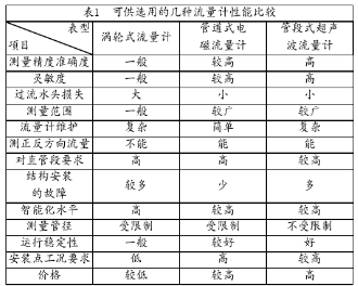 幾種可以進(jìn)行比較的流量計(jì)的性能特點(diǎn),見表1。